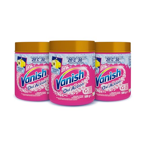 Vanish Oxi Action Multipower Polvere Rosa, Smacchiatore per Capi Colorati, 3 Confezioni da 500 g di Smacchiatore per Bucato, Additivo Lavatrice Multiazione senza Candeggina
