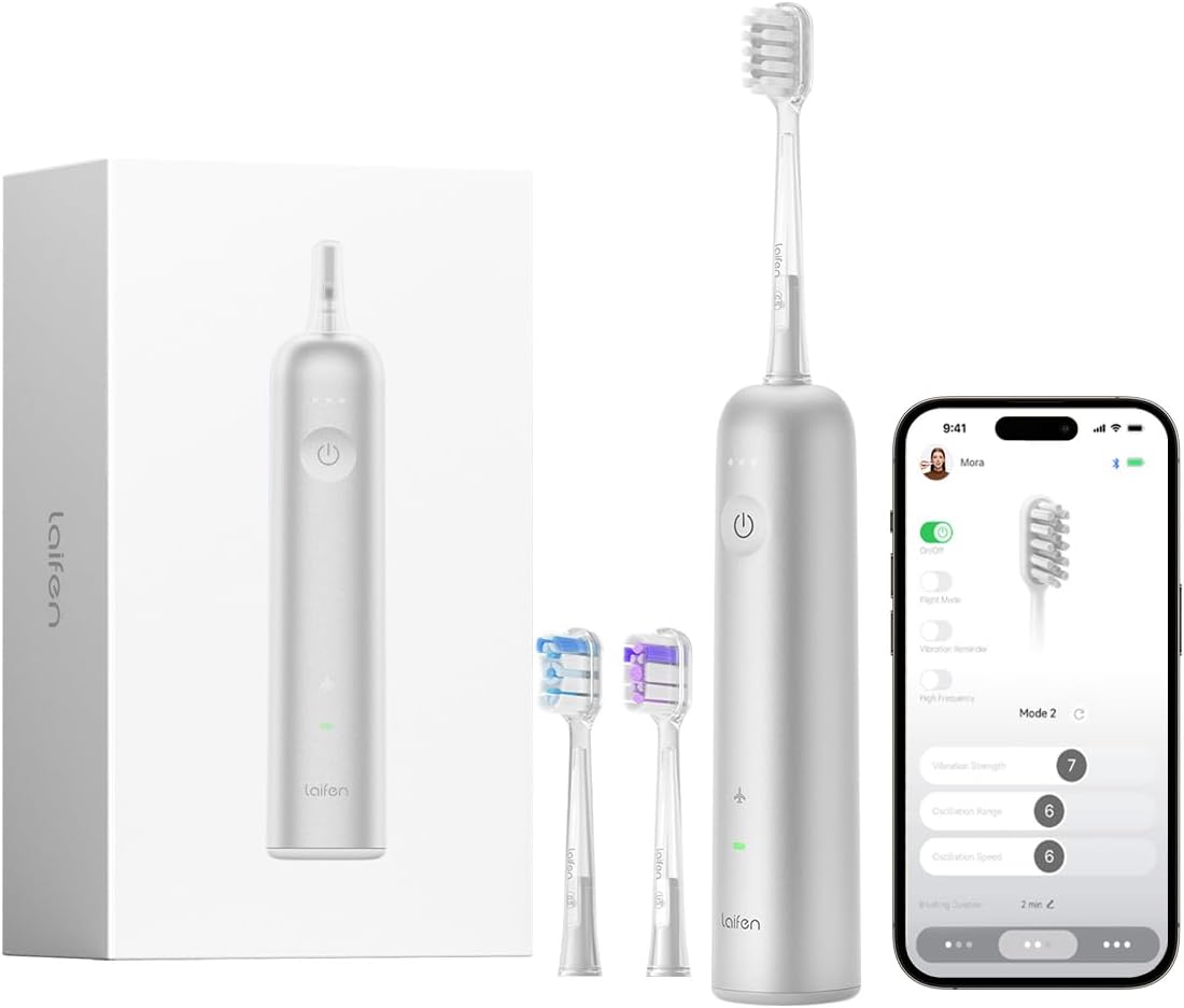 Laifen, Spazzolino Elettrico Sonico Wave, oscillazione e vibrazione, 66.000 VPM, controllo PID integrato, per adulti, con 3 testine, 3 impostazioni/10 livelli, impermeabile IPX7, ricarica magnetica, Controllo da App