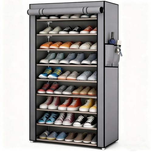 Scaffale Portascarpe, dimensioni 30 x 60 x 160 cm, con Copertura in Tessuto e Struttura di Metallo Stabile e Resistente, ogni ripiano supporta fino a 3 kg, assemblaggio rapido senza attrezzi